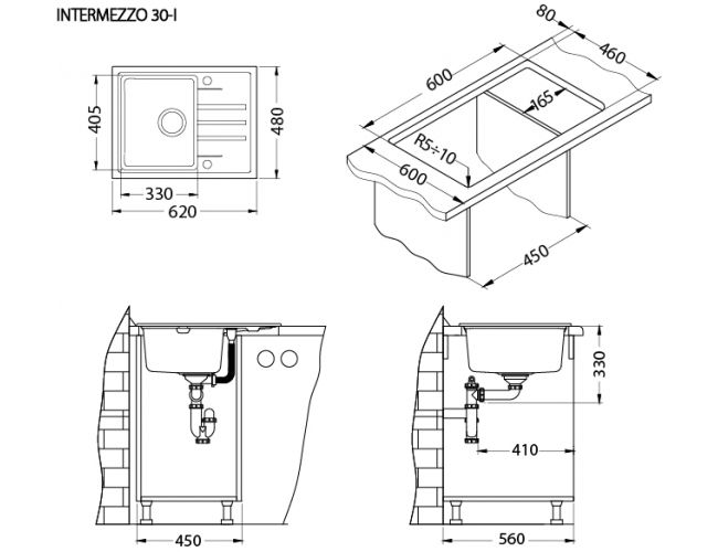 Chiuveta Alveus INTERMEZZO 30 alb G11 compozit 1117037 cu montaj la nivelul blatului / ingropat