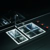 Chiuvetele Quadrix sunt fabricate din Cr/Ni 18/10, cu o grosime de 1 mm, cu unghiul cuvei R10. Unghiul radius de 10 mm si adancimea cuvelor de 200 mm, confera un volum mai mare al cuvei.