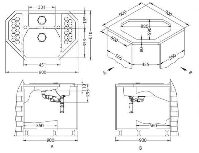 Dimensiuni chiuveta (mm): 900×610