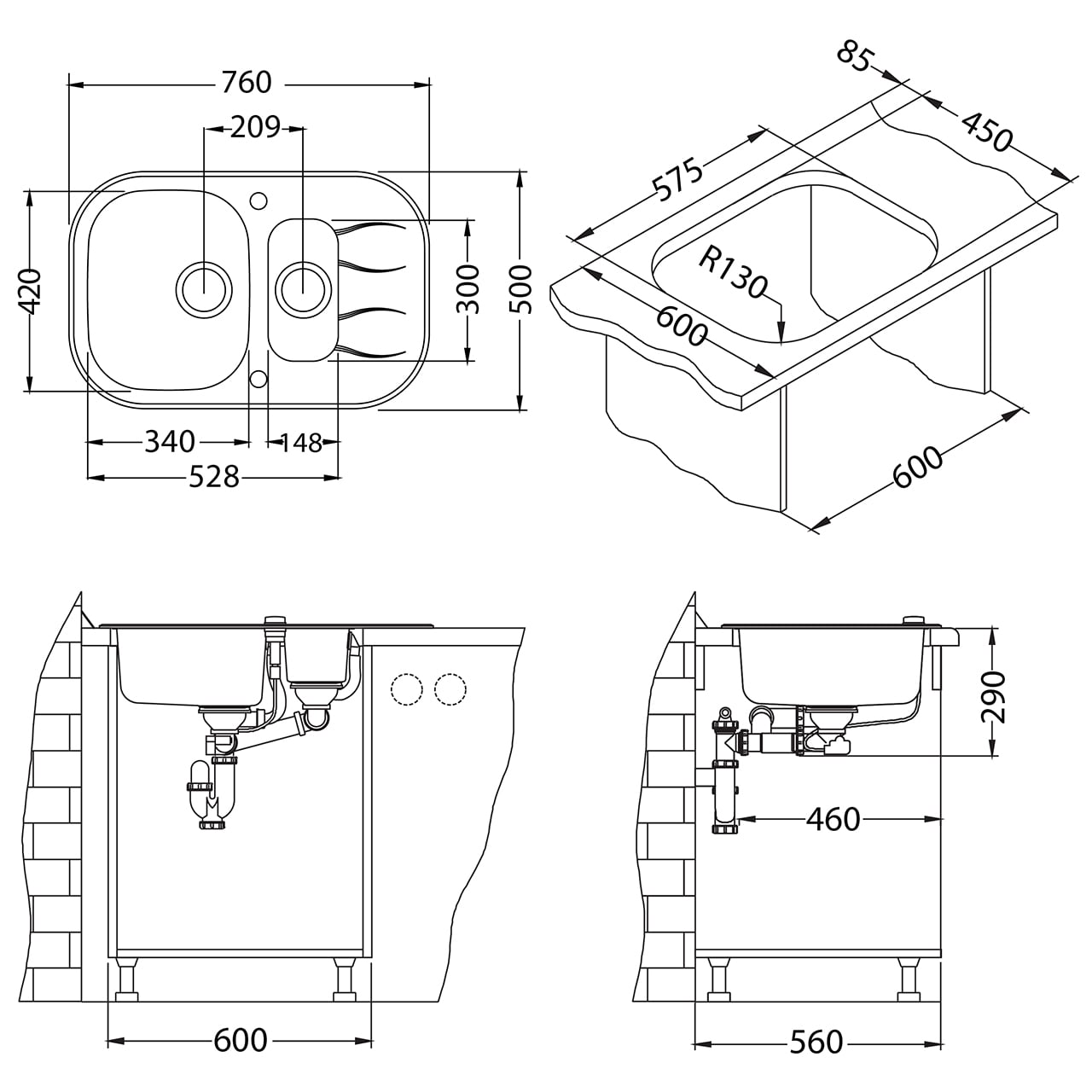 Chiuvetele Wave sunt fabricate din inox de calitate (Cr/Ni 18/10) si un blat de sticla securizata (tratata termic). Gama Wave contine modele de chiuvete cu una sau doua cuve, posibilitatea de perosnalizare a blatului de sticla.