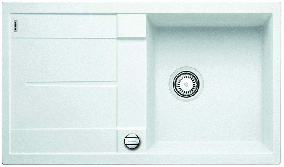 Chiuveta Blanco METRA 5 S silgranit alb reversibila 513037 cu montare clasica pe blat, cu excentric.