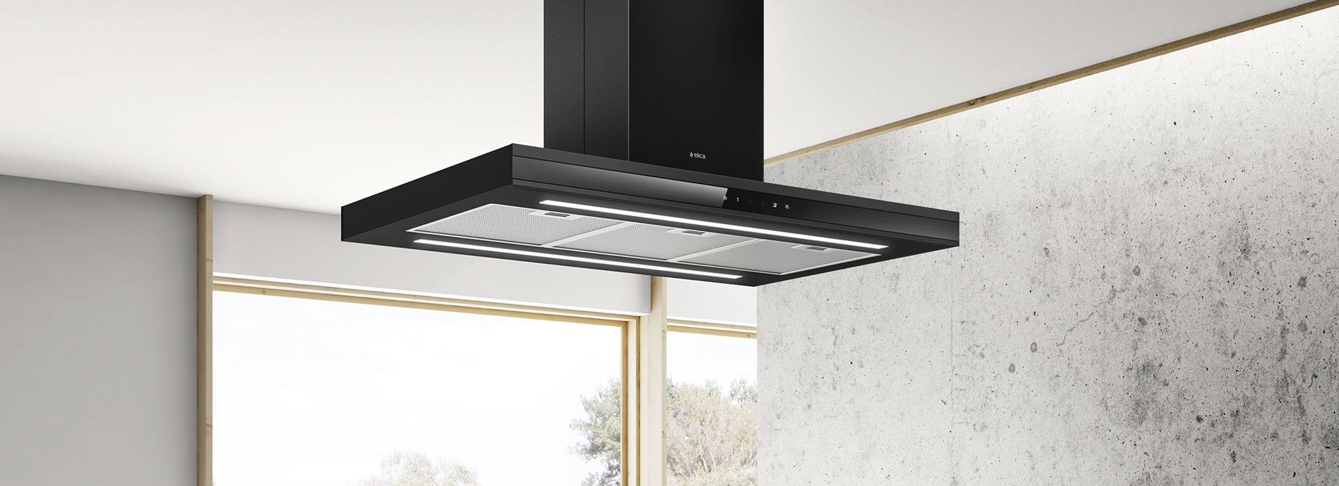 Adéle Island este echipat cu un panou frontal din sticla neagra inserat intr-un cadru din aluminiu care imbunatateste estetica produsului. Combinarea acestor materiale face ca Insula Adéle sa fie ideala pentru orice bucatarie si se va combina perfect cu alte aparate. Cu 770 m³ / h la viteza intensa, capota ofera un sistem de extractie cu performante excelente. Controlul tactil ascuns in interiorul sticlei ofera, pe langa un design minimalist, o experienta de utilizare usoara si intuitiva . Banda LED permite iluminarea blatului cu un consum redus si poate raspandi uniform lumina datorita unei distributii liniare.