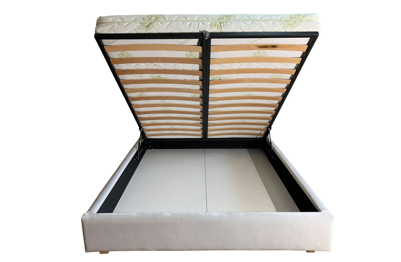 – Somiera metalica rabatabila cu lamele din lemn stratificat de fag si cu mecanism rabatabil prevazuta cu doua pistoane pe gaz