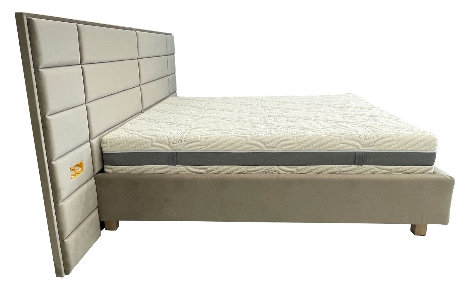Modelul de pat matrimonial se remarca printr-un aspect impunator, emanand eleganta si rafinament datorita designului tabliei care adauga o stralucire aparte.