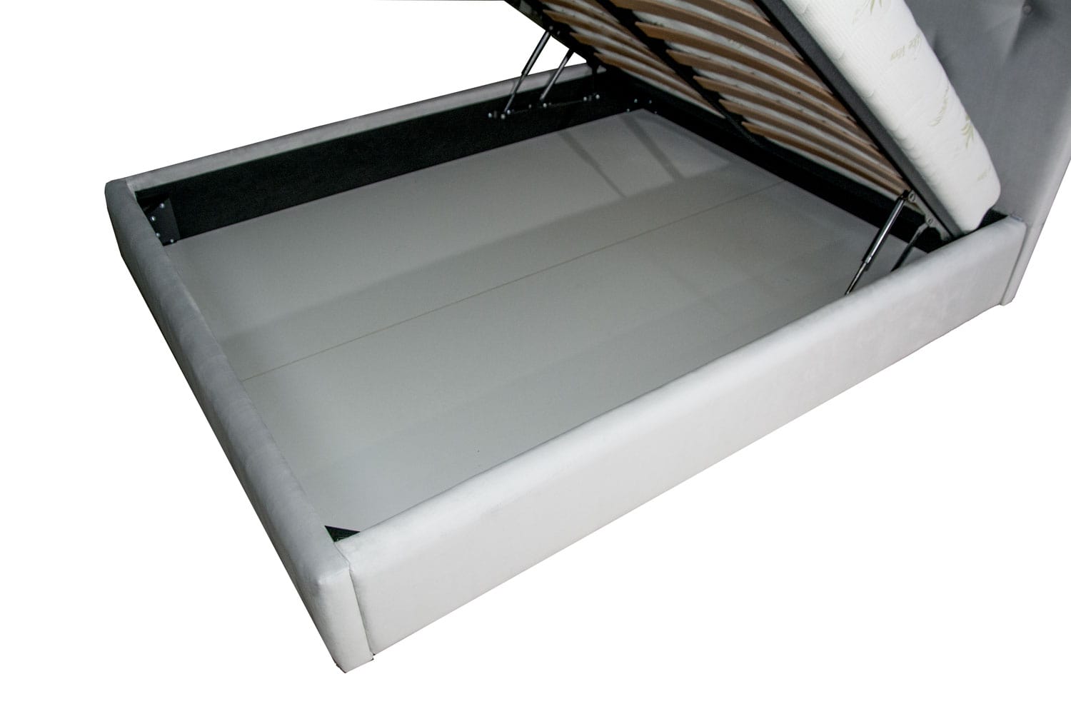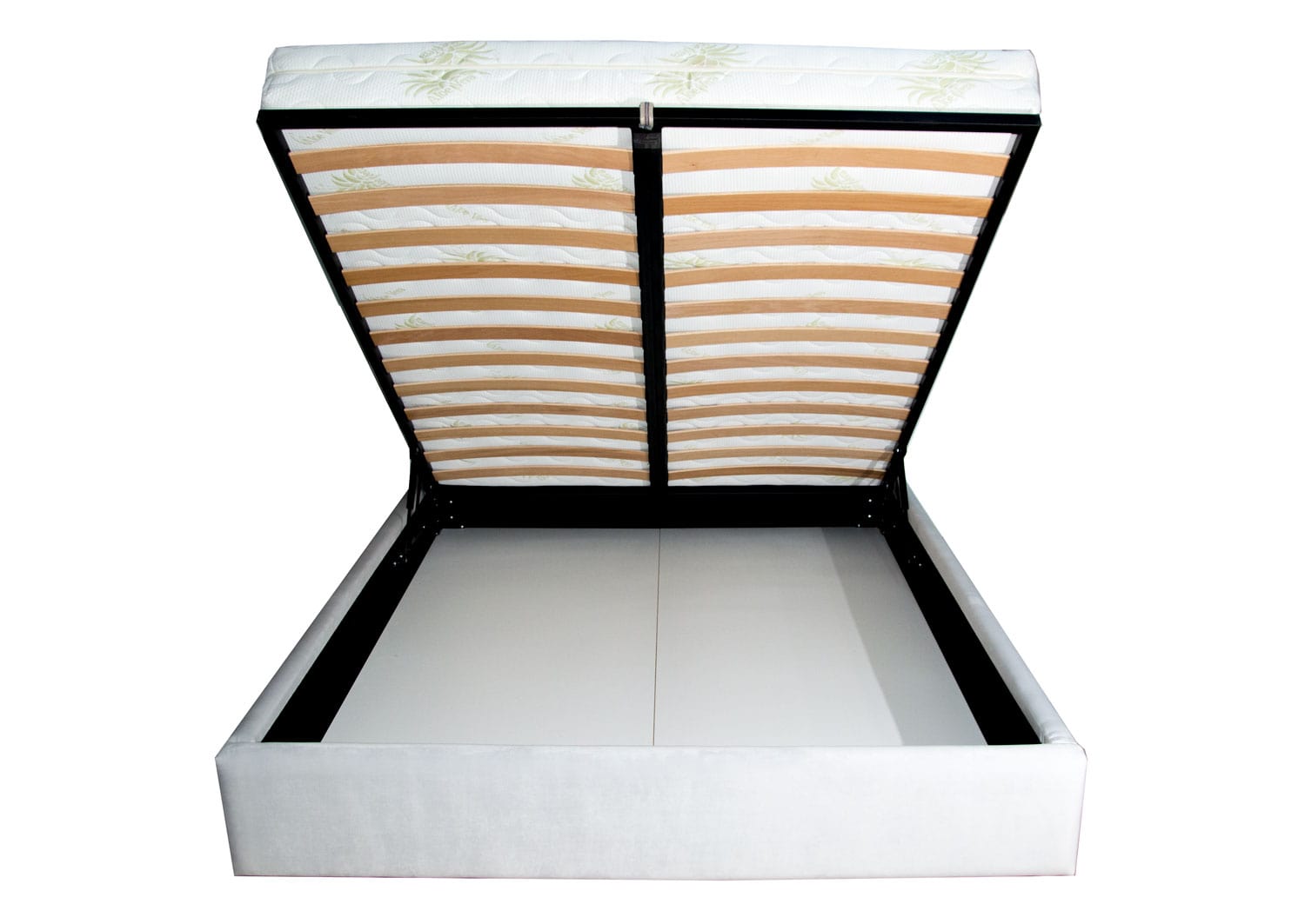 – Somiera metalica rabatabila cu lamele din lemn stratificat de fag si cu mecanism rabatabil prevazuta cu doua pistoane pe gaz