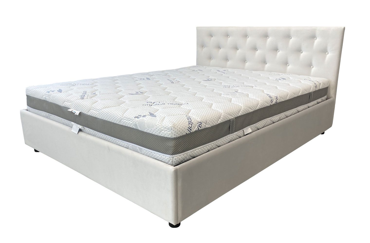 Pat matrimonial MIRUNA este complet tapitat in stofa Prestige 2769 (gri deschis aluminiu) avand inclusa o somiera rabatabila, box lada depozitare.