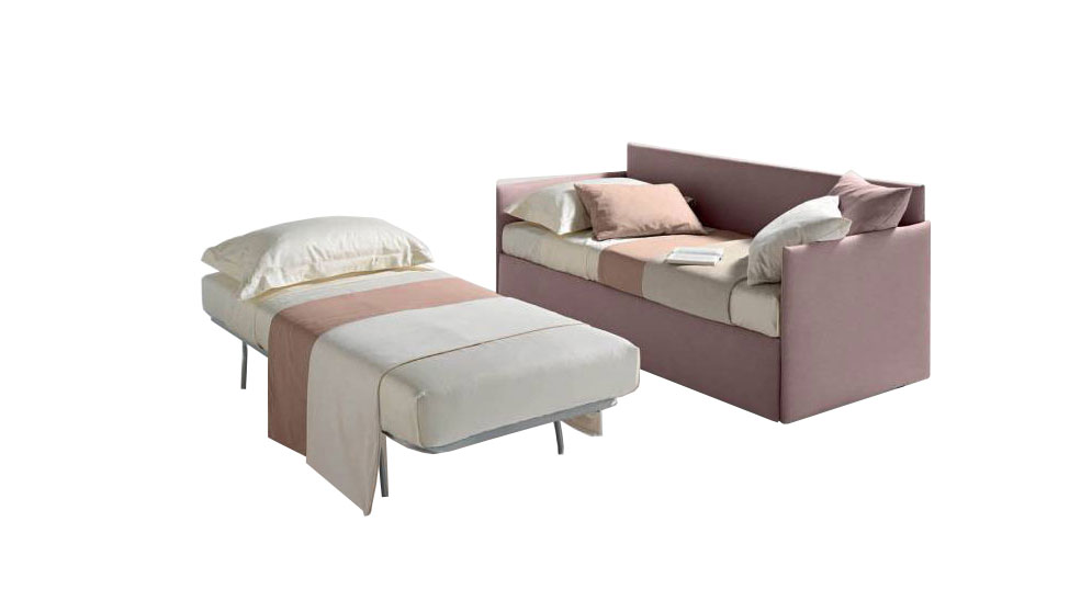Se pastreaza un design simplu per ansamblu, dar datorita modelului de pat tapitat sau dehusabil genereaza un sistem foarte practic si ingenios. Stofa din care este confectionat acest model creeaza un joc de lumini si umbre datorita texturii sale.