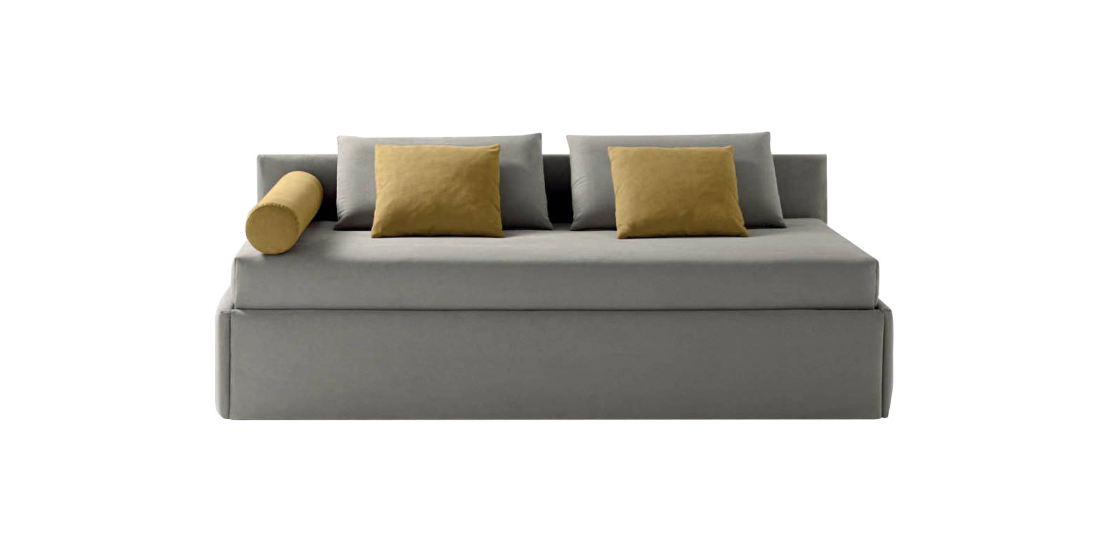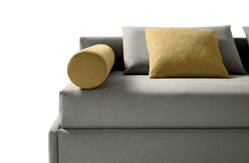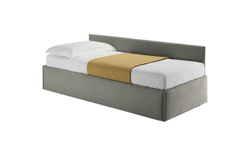 Se pastreaza un design simplu per ansamblu, dar datorita modelului de pat tapitat sau dehusabil genereaza un sistem foarte practic si ingenios. Stofa din care este confectionat acest model creeaza un joc de lumini si umbre datorita texturii sale.