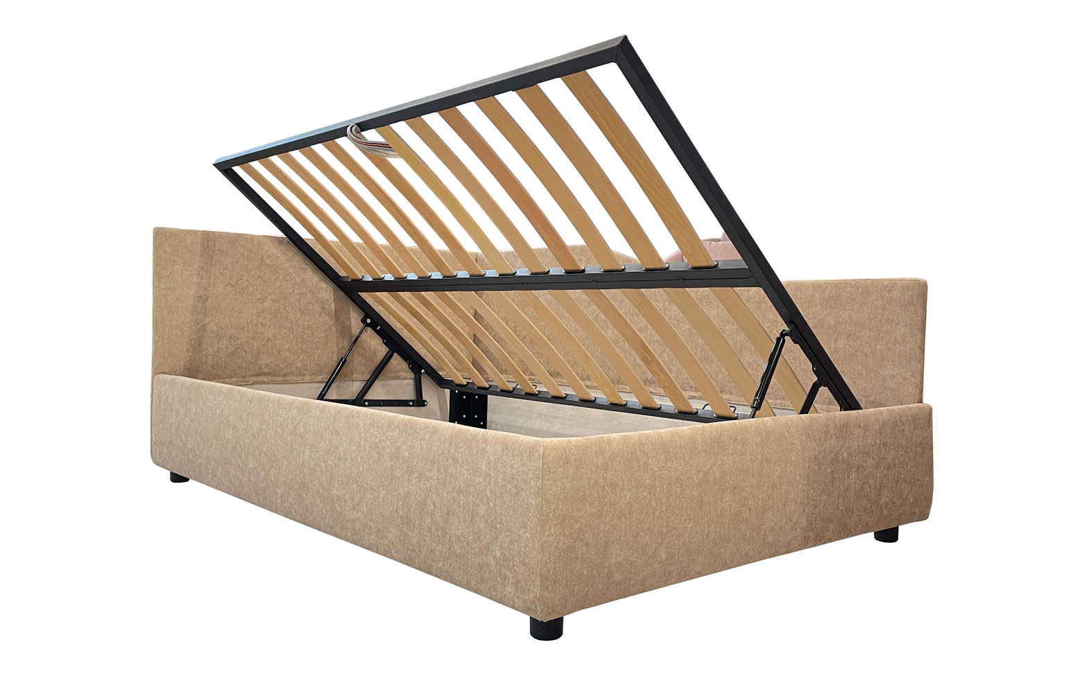 Dispunerea lamelelor faciliteaza ventilatia saltelei. Modelul de pat se prezinta cu lada pentru depozitare foarte incapatoare.