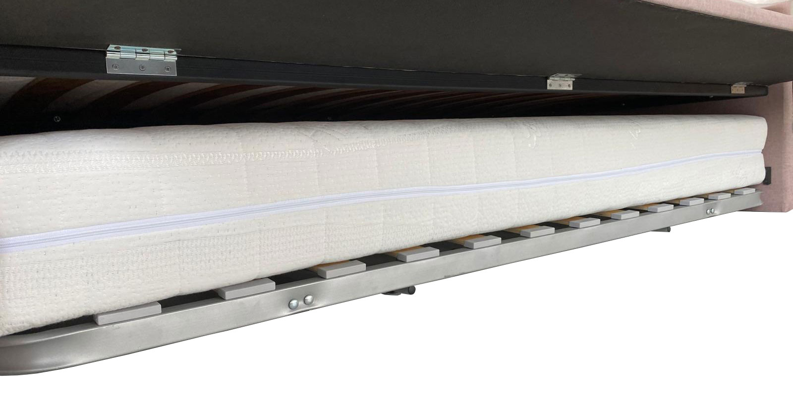 – Somiera rabatabila si salteaua au dimensiunea de 90/200 cm prevazuta cu 2 pistoane pe gaz