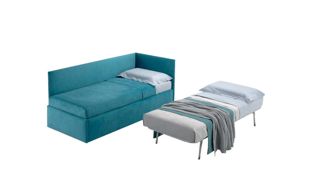 Se pastreaza un design simplu per ansamblu, dar datorita modelului de pat tapitat sau dehusabil genereaza un sistem foarte practic si ingenios. Stofa din care este confectionat acest model creeaza un joc de lumini si umbre datorita texturii sale.
