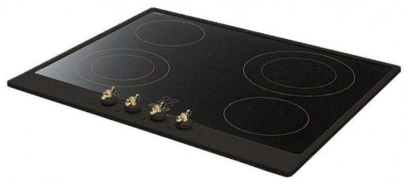 Plita cu inductie, 60 cm, rama crem, butoane de control din alama