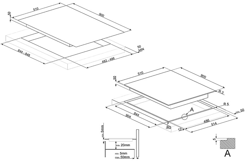 Plita-pe-gaz-Smeg-PV695LCNR-vitroceramica-neagra-deasupra-blatului-iak.ro