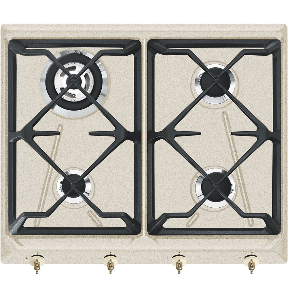 Completati aspectul bucatariei dvs. cu plita cu gaz Smeg. Un puternic arzator ultra-rapid de 4,95kW dual flame 3 way asigura incalzirea rapida si gatirea rapida.