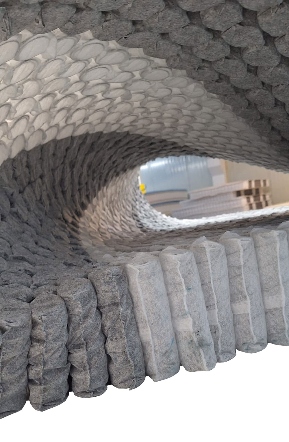 La interior, salteaua integreaza un nucleu cu 1600 de arcuri impachetate individual (dimensiune 160×200 cm), fiecare functionand independent pentru a raspunde exact presiunii exercitate de corp.