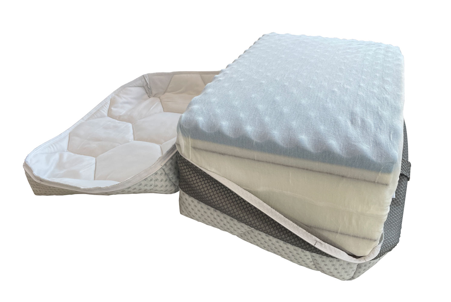 Banda de aerisire 4D asigura o ventilare constanta, iar husa este prevazuta cu fermoar perimetral complet detasabil.