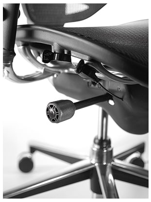 Reglarea inaltimii sezutului se face printr-un cilindru pneumatic pentru o pozitie cat mai corecta a talpilor pe sol. Este de asemenea prevazut cu o protectie antisoc pentru a preveni revenirea foarte brusca a spatarului catre utilizator. La fel ca si bratele sezutul este reglabil si culisant. Spatarul, sezutul si tetiera scaunului sunt realizate din plasa si se pot realiza intr-o gama foarte variata de culori.