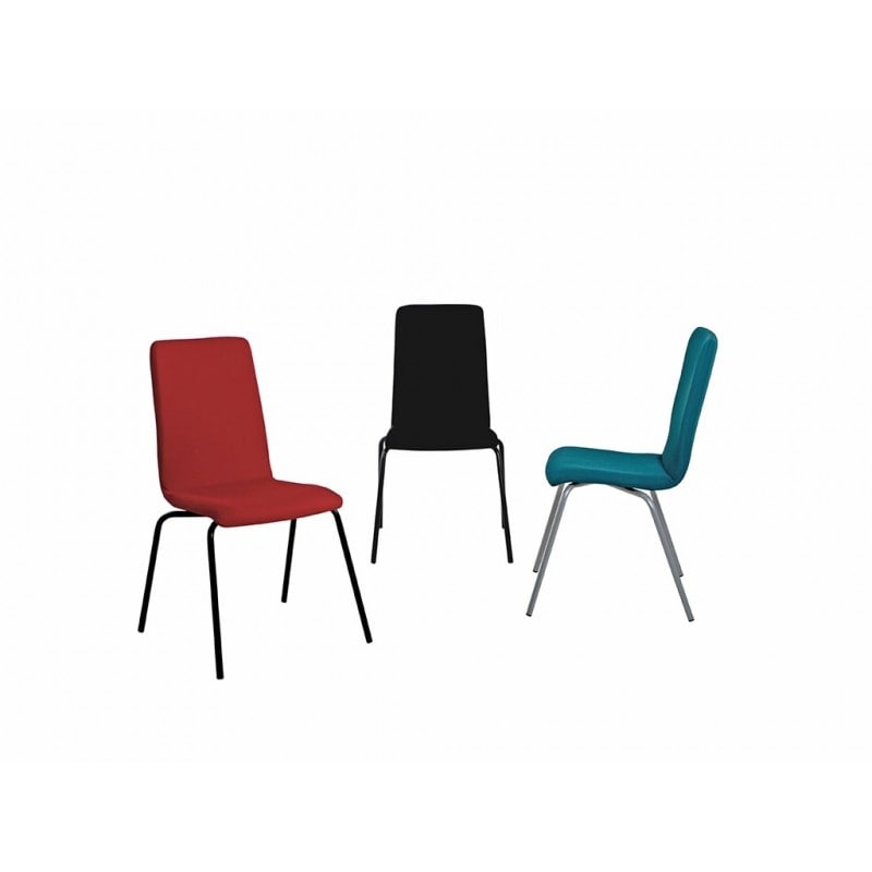 Scaun vizitator – conferinta suprapozabil, cadru rezistent din teava de otel vopsita in camp electrostatic (negru sau gri), sezut si spatar scoica din lemn stratificat tapitata.